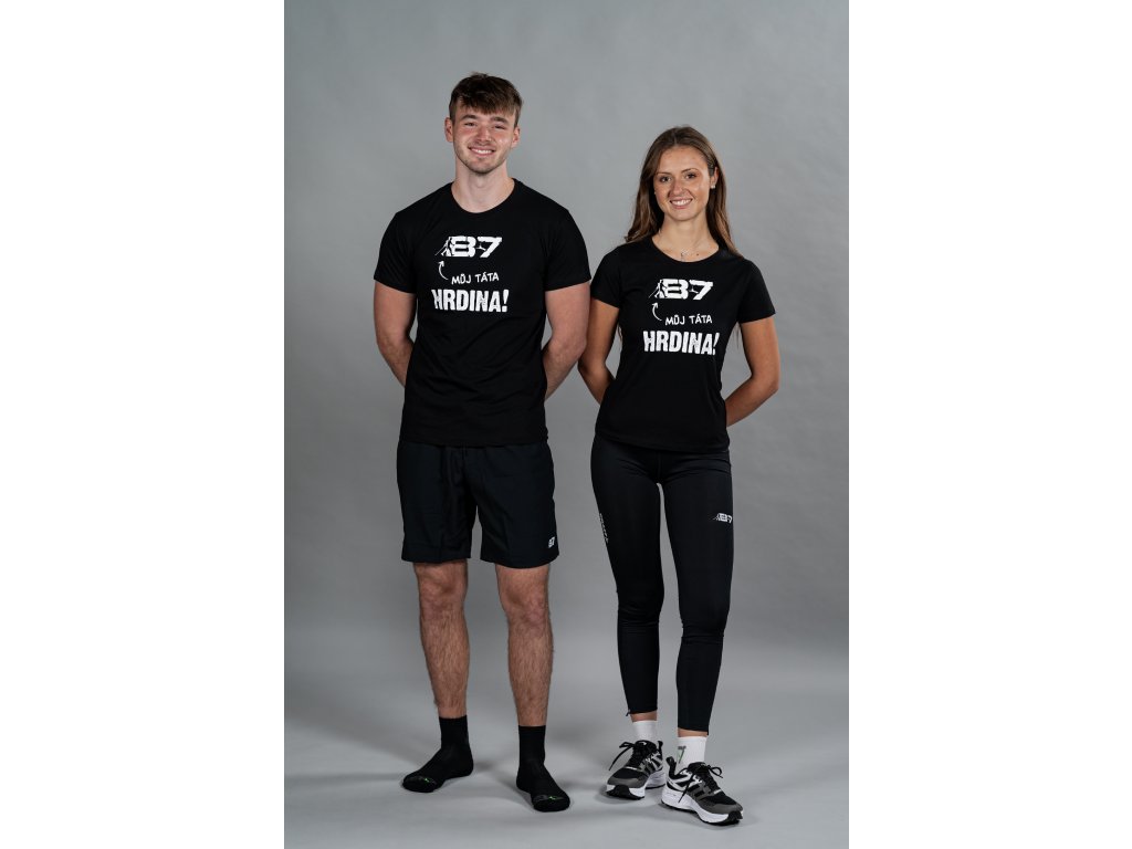 Černé bavlněné triko s motivem B7 Můj táta hrdina.